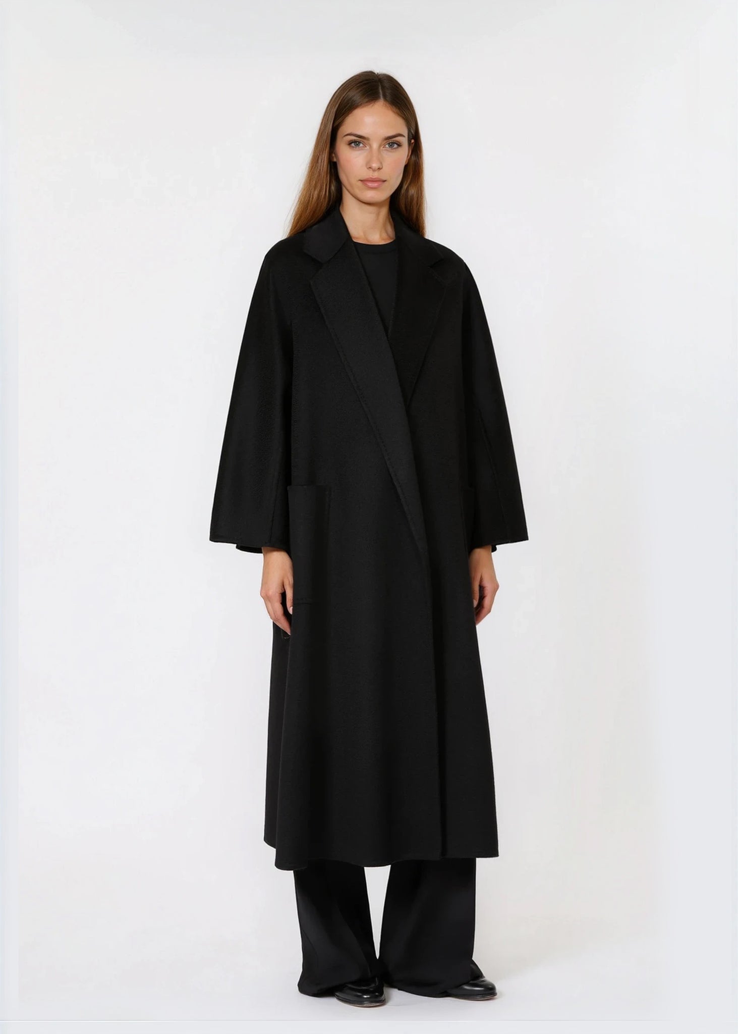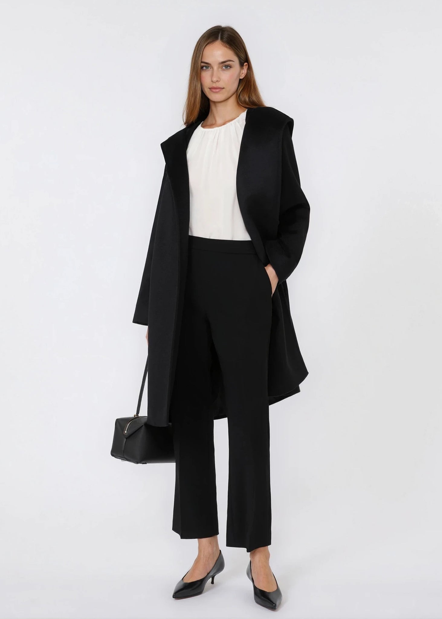 Prefinjeni mantil kaput izrađen od 100% vune. Serena odiše sportskom elegancijom kroz čiste linije, mekani pad i skulpturalnu kapuljaču-rever koja nežno uokviruje lice. Silueta je opuštena, a ipak profinjena, kreirana da se lako kombinuje od jutra do večeri.